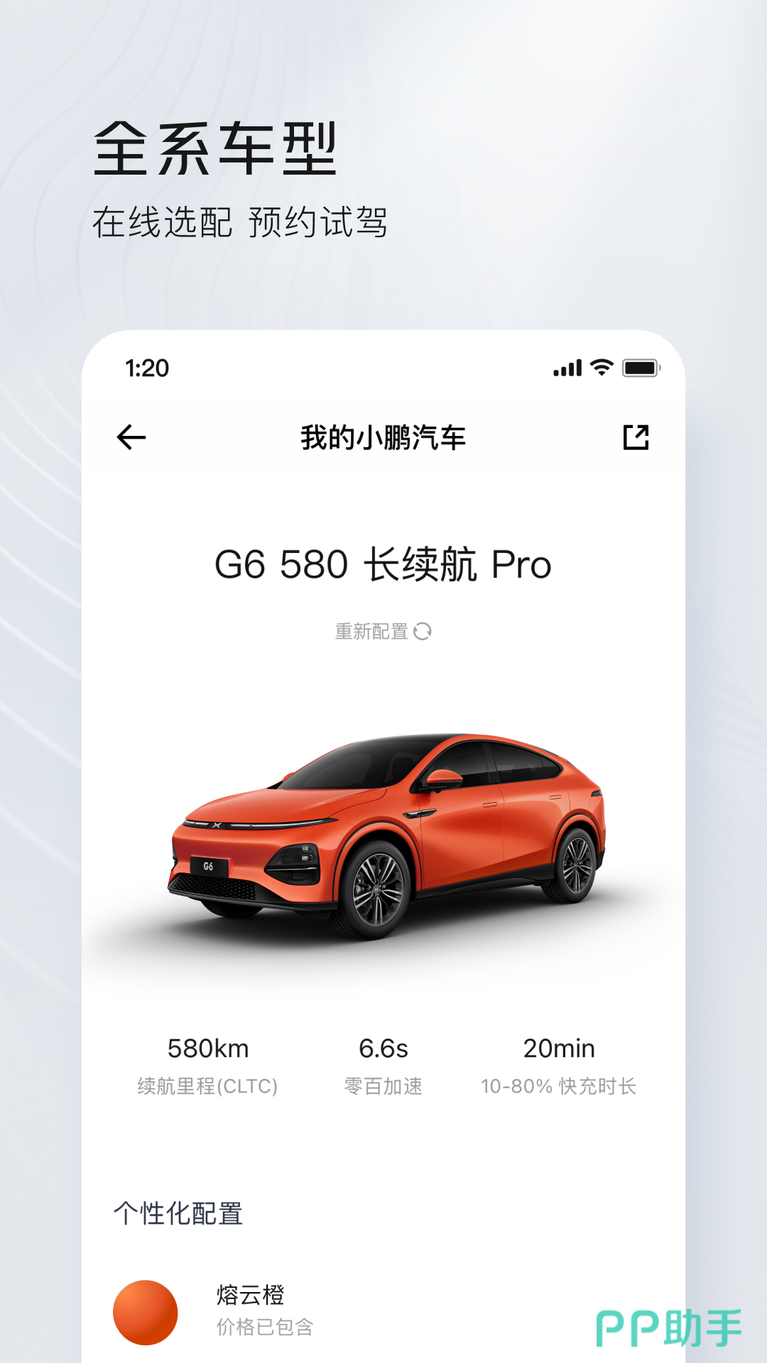 它属于小鹏品牌官方平台,实现线上全方位3D看车,查看内饰和外观造型,享受最新购车权益,一键查找充电桩,规划好日常出行路线,确保即时安全省心充电。