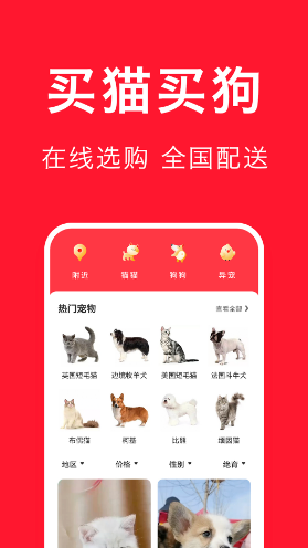 想要开启自己美好的养宠生活吗?一键下载就可以了。这款软件可以帮助大家买到心仪的宠物,同时如果手上有可爱的宠物,也可以将其出售,让自己足不出户就可以完成宠物的交易,而且还支持全国配送,公司成立时间比较久,支持的功能也比较全面,在这里大家都能快速的完成宠物的交易,如果遇到宠物生病了的话,也可以在这里进行咨询。