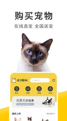 这是一款买卖宠物的平台,里面会有可爱的小猫咪,还有一些活泼的小狗,更多小宠物在线选购,大家都可以快速的找到适合自己的宠物,同时如果是卖家的话,也可以在这里完成注册,平台涵盖了数千家不同的犬舍,我们可以直观的看到可爱的小宠物,更好的选择适合自己的宠物,种类更全。