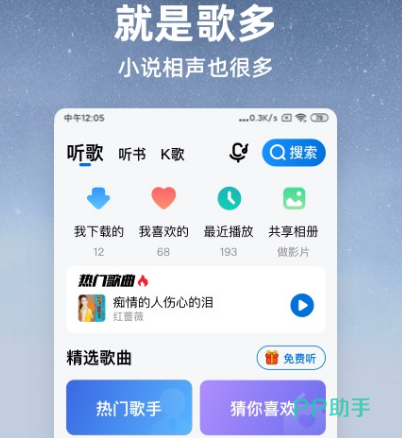 酷狗从始至终都是非常火爆的音乐平台,现在又推出大字版本,作为酷狗音乐的升级版本,对于中老年人士来说再合适不过,其中的字体做了放大设计大字体更加清晰更加清楚。除了可以聆听各种歌曲之外,还能唱歌,都有很多贴心服务,各种中老年歌曲,纷纷推荐,随时随地满足唱歌爱好。