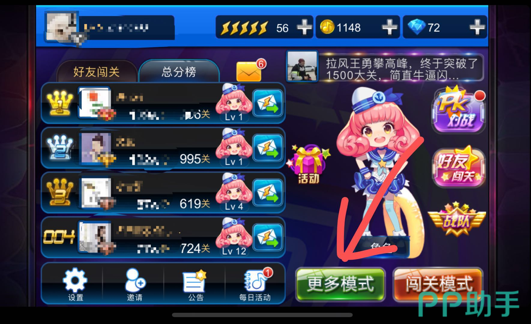 除了闯关模式之外,还可以选择一些其他新鲜的玩法,点击右下方的更多模式进入模式选择。