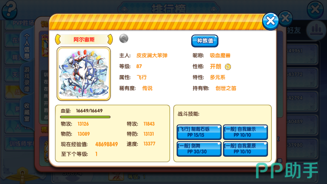 (1)种族值:阿尔宙斯拥有者全游戏最高的种族值,比完全形态的Z神还要高出12点,平均140的资质,是个全能型的宝可梦,在基础属性加成上就领先别人一大截,毕竟准神的宝可梦种族值也只有580而已。