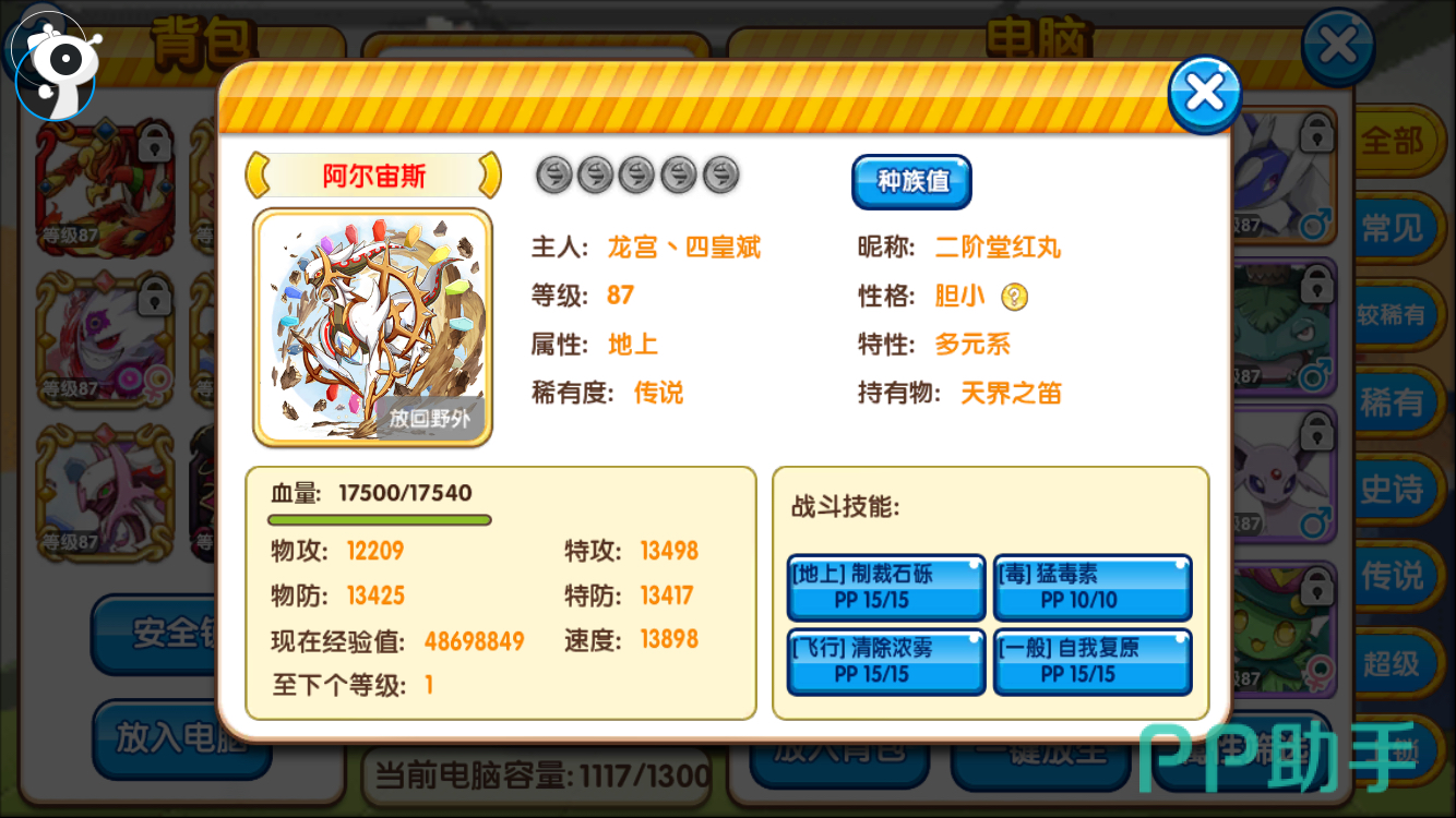 总结:由于阿尔宙斯有所有的属性,可玩性非常的高,有些东西还是要大家慢慢摸索的,毕竟阿尔宙斯是全能型宝可梦,自己的队伍缺什么,只有自己知道。