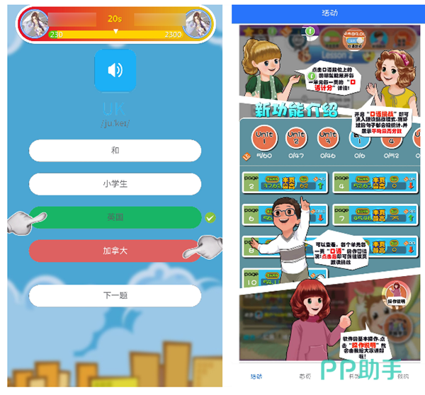 专为人教版英语课本而推出的配套点读工具,不仅仅是收录了人教版英语各个年级的电子教材,更是通过小剧场、小动画等形式让课本变得更加生动,从而提升孩子们的学习兴趣,更是加深对课文、单词、句型的记忆。软件中还带有丰富的口语练习、AI评测,帮助我们随时测试英语水平和口语能力,更是能够通过测试结果自动推荐一些强化训练项目,有的放矢地提升英语学习成绩。