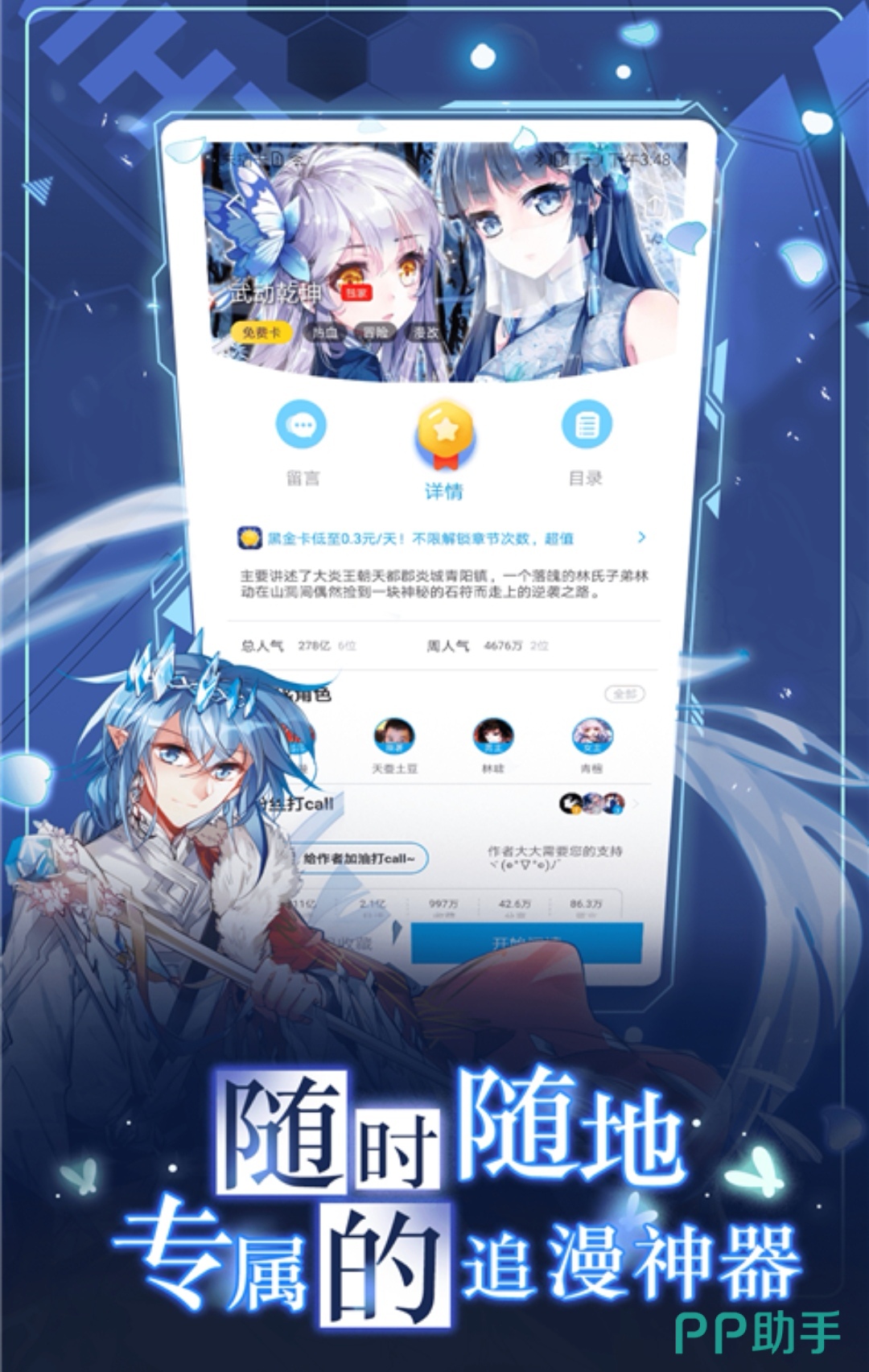 全面升级的视觉效果,更加清晰的画面体验,旨在让各位小伙伴能够在这里能够沉浸式地享受漫画,在这里聚集了众多漫画发烧友,小伙伴们可以进行评论留言,说不定可以遇到自己的同好呢~一段美好的友谊也可以在这里进行展开,命运的齿轮由此开始转动。