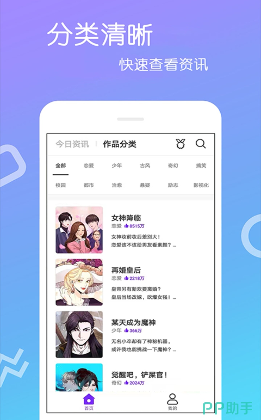 喜欢看漫画的小伙伴可以上这款软件来了解一下,在本app上,童鞋们不仅能够看到海量的漫画资源,而且还有实时漫画资讯,让大家能够知道关于漫画的最新消息,万一漫画到了时间没有更新的话,软件也会马上发出消息,这样一来,大家就不用眼巴巴地去等待啦!