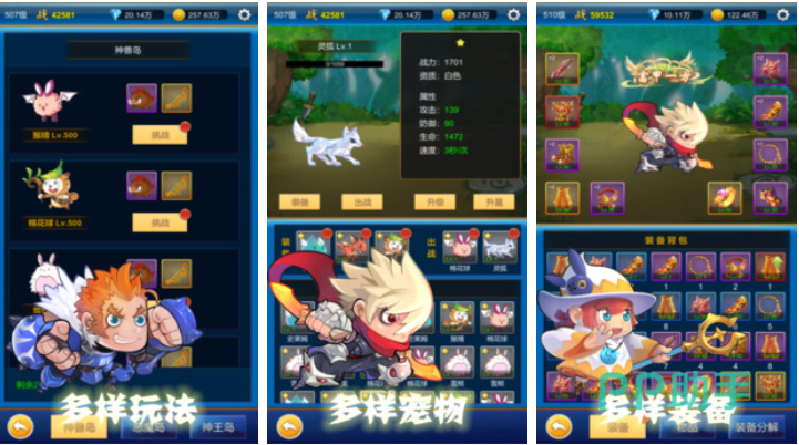 本作是款玩法非常多的挂机放置类手机游戏,这款挂机游戏最大的亮点在于不氪金也可以体验当氪金大佬,你可以在游戏世界免费无限氪金,利用免费获得的钻石抽取无数的奖励,伙伴系统、宠物系统等挂机游戏要素齐备,丰富的副本以及形形色色的boss也让玩家眼前一亮,不用充值玩家亦可以体验当氪金大佬的乐趣!