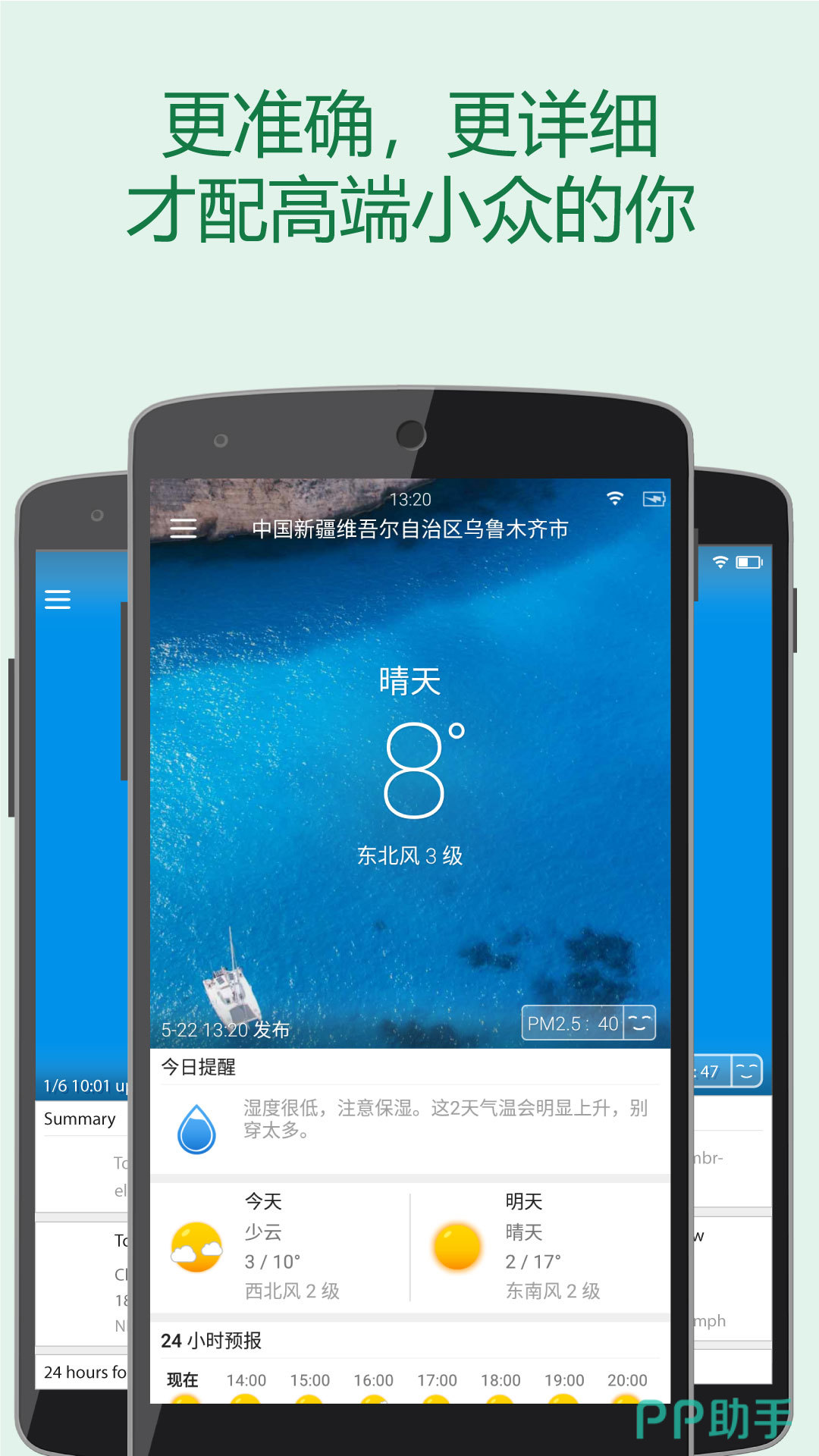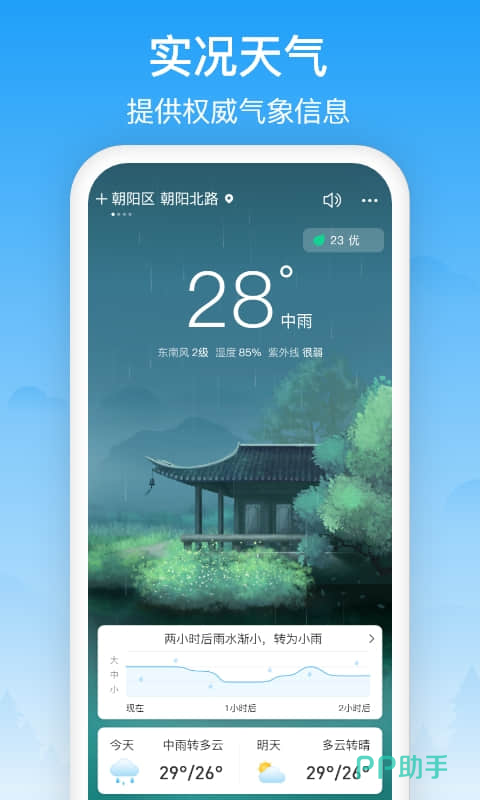 在这里已经实现了主小时进行预报,所以在精准度方面又提高了一个等级,能够预报未来几点几分开始下雨,绝大多数情况下都会非常精准。还可以直接设置到桌面上,打开手机就能轻松查看,不用再额外开启软件。