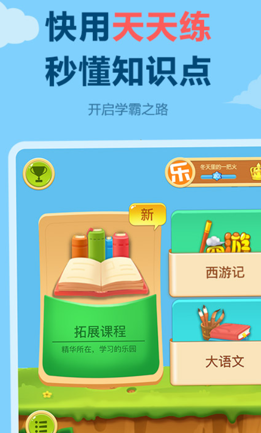 快用天天练,每天都去练,秒懂里面的所有知识点,八千多种动画课程,轻松易懂,开启小伙伴们的学霸之路,里面有小初高多种课程,多科多种版本,帮助学生课前预习,课后复习。