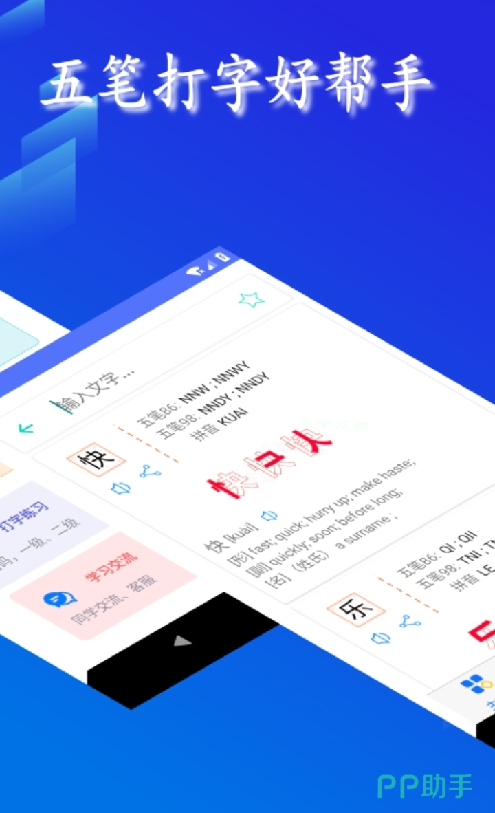 这款app有助于电脑五笔打字,可以查五笔拼音和编码,还有读音朗诵。软件上打出来的每个字都会显示英文形容词、副词,五笔的86版和96版的字根表也会显示,字体重要的偏旁部首会标红,让用户更快掌握打字方法。