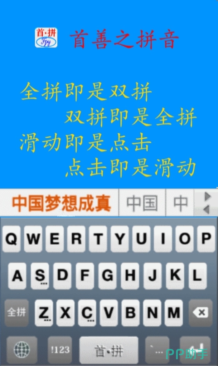 《首拼输入法》可以教大家输入更少的字母完成打字,提高打字速度。在传统的全拼输入法中,打字需要将字音的所有声韵母点击一次才能打出字体,而多层面双拼就只需要打全拼一半或者更少的字母就可以打出来,是很便利的输入方式。