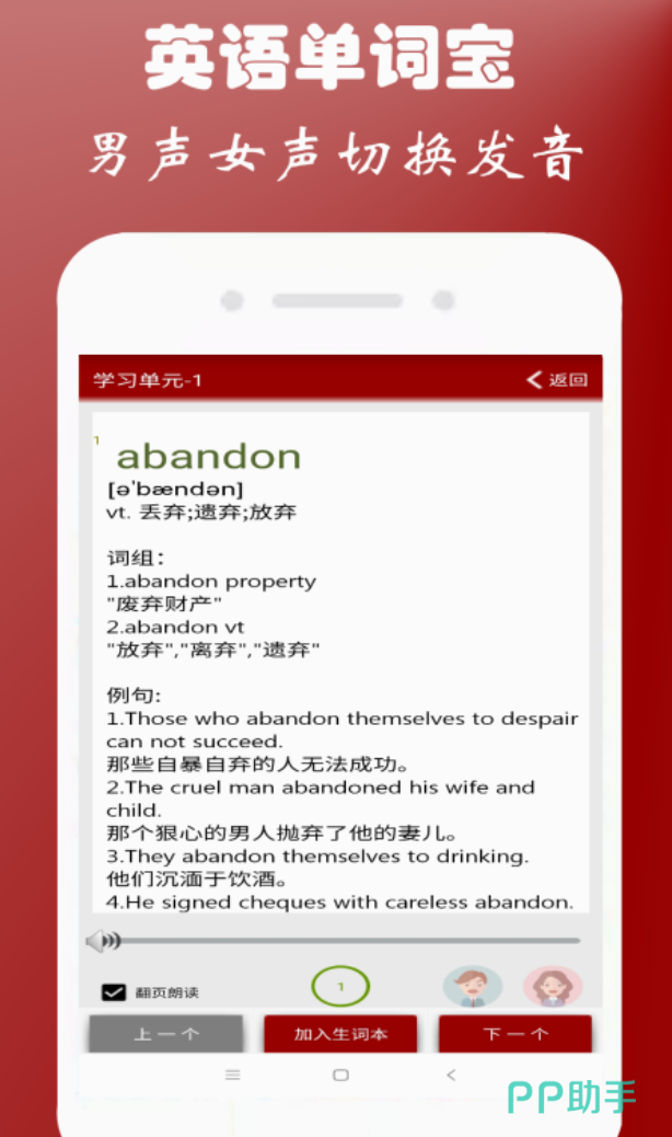 以后看到单词背诵再也不会觉得痛苦,以很有趣的方式快速学习一门语言,学习英语就是将许多单词堆砌在一起,它主要能激发阅读、背诵的兴趣,每天背诵任务量小,能让你很期待第二天的学习。