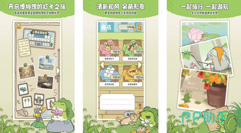 《旅行青蛙·中国之旅》中的主角是青蛙,而你作为青蛙的主人要做好青蛙的后勤工作,包括食物以及家园的建设。每隔一段时间,外出旅行的青蛙就会给你发回照片,将它在外面的所见所闻都告诉你如果青蛙回家的话,还会邀请它的好友来家中做客,而你就必须要准备好食物,招待它的朋友哦。