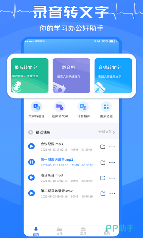 我们记忆力经常出错,因此需要录音工具,协助作业,避免遗漏重要事项。这款软件简化了工作和学习流程,导入音频输出文字,灵活保存成不同格式的文件。