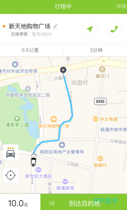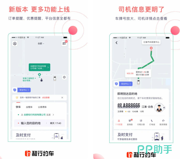 软件支持顺风车、预约车等车主接单服务,车辆前往接客点之前双方都可以通过在线地图共享位置,方便车主接送客人,而且屏幕支持车牌号放大与司机详情点击查看,双方信息都简单明了。