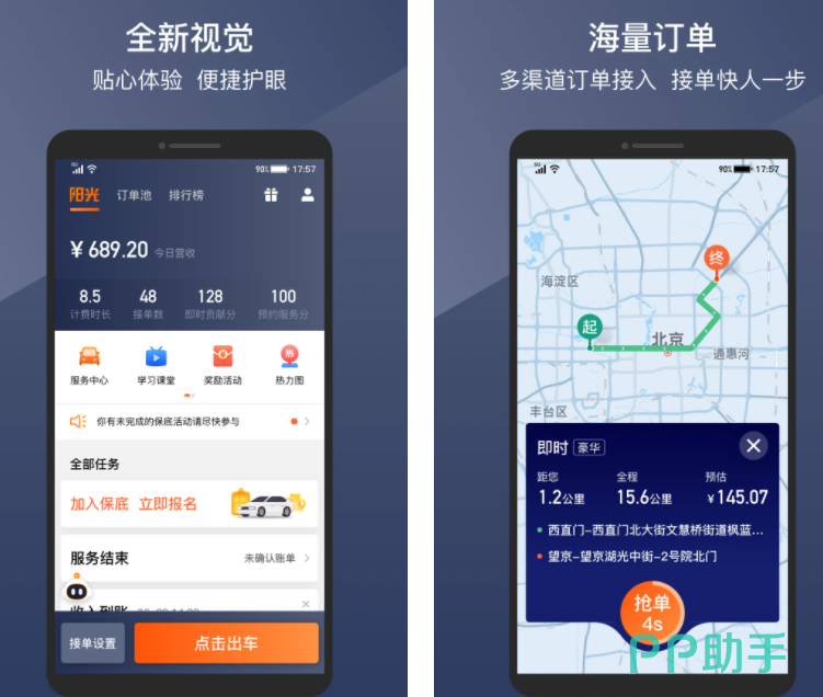 这款网约车软件覆盖全国各大城市,涵盖打表的出租车、快车或者包车的类型,行程前后可在线文字、语音电话联系客户,系统提供智能派单与预约服务,车主操作接单也很简单。