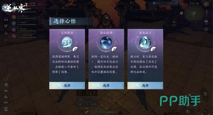 完成每一关卡、或击败敌人后有几率掉落心悟,可以从随机出现的三个增益效果中选择其中一个,这些增益效果主要是对玩家的职业技能和天缘能力进行强化。不同的心悟组合起来会你有不同的提升属性效果。