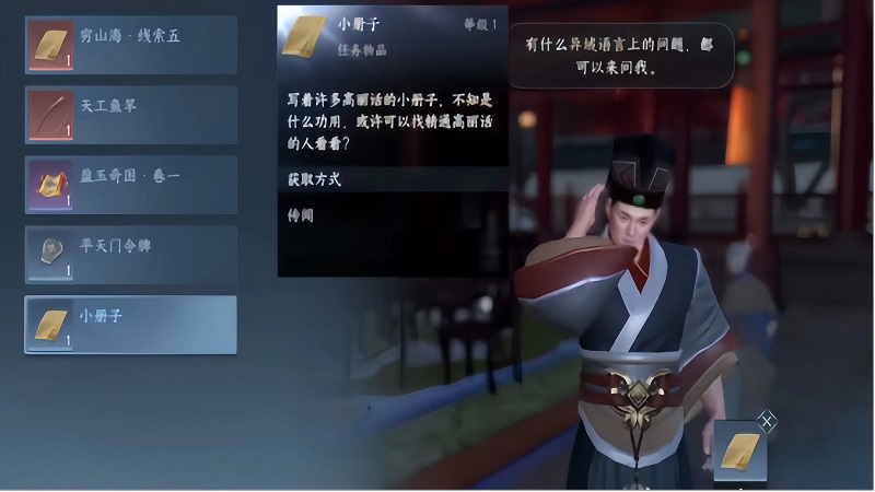 然后继续跟着任务流程走,中间会有打架,可以获得一个烧烤架,到杭州(1015,1012)找到西域人,将烧烤架给这个西域人,然后任务结束后就会获得一张羊皮纸,再去李大人那里出示,那么这个人间译语官任务就是全部完成了。