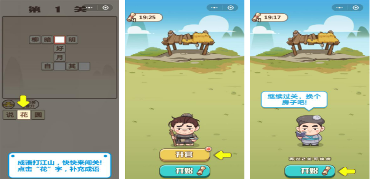 您是否有一天想过可以通过成语来升官打江山?在这里面就可以实现从一届平民、甚至是乞丐一步步的闯关就可以获得状元帽晋级升官啦,每一个关卡都会给玩家们1到3个方块,玩家们需要在里面选择然后填到界面的空白处,使之横着和竖着读起来都是一个成语就算成功。