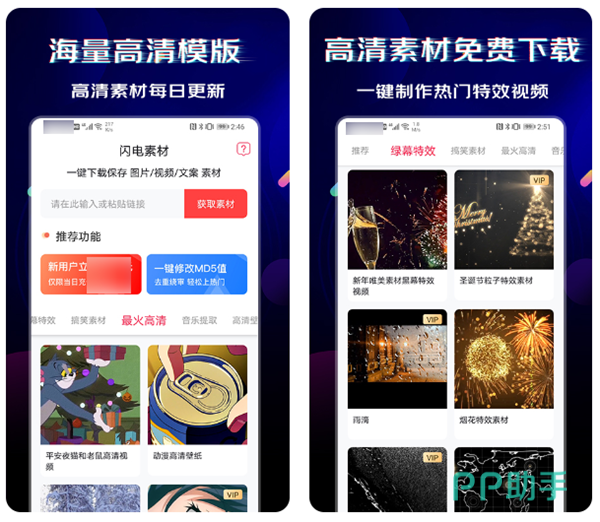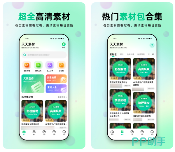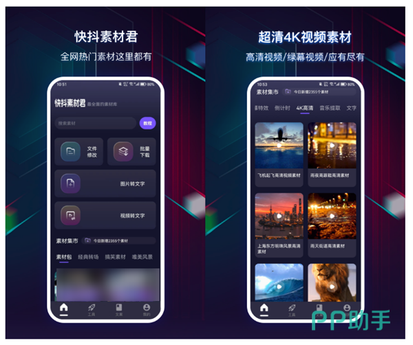 带有海量的超清素材可以免费使用,也是很多博主和UP主都在使用的素材软件。这里不仅带有大量的高清图片、酷炫视频特效和模板,而且还能够发现一些影视剧名场面、火爆的BGM音乐以及各种类型的文案。软件每天都会为我们发掘更新当下比较热门的素材,还带有众多强大的创作工具可以使用,感兴趣的话可以尝试下。