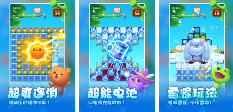 《天天爱消除》中需要消除的图案都是一些会动的小动物,比如狮子、老虎、大象、小猫、小狗的,且这些小动物们的设计都非常卡通,每次点击的时候,他们还会做出相应的动作来吸引你的注意力,是一款充满童趣的三消类游戏。在最新的版本中,蜡笔小新还加入了其中,喜欢蜡笔小新的玩家就赶快下载吧。
