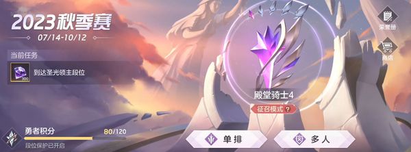 在这个游戏的设定中,大家达到符合的条件之后就可以开启排位玩法了,刚打开排位大家的段位只有曙光守卫,也就相当于青铜段位,曙光守卫打满之后就可以来到不屈勇士了,相当于白银,接着是无畏先锋,然后是精灵精卫,接着就到了大家期待的圣殿骑士了,然后是圣光骑士和超星主宰。