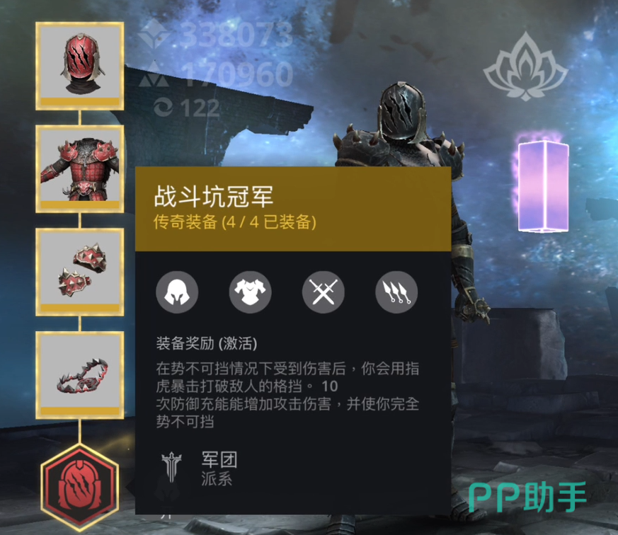 首先是t0档的套装,分别是战斗坑冠军套和梦魇套。前者战斗坑冠军套是一攻防一体的套装,这套套装的攻防属性在游戏中属于天花板级别,当大家穿上这套强力套装之后就可以化身成六边形战士,在六边形战士的状态下去进行对战,那是可以打出碾压效果的,只需要带上一把高伤害武器,然后无脑和对手换血就行,只要去换血,那就必定不会亏,每次换血对手失去的血量都是要远高于你的,基本上这样来回换个2-3轮,就能轻松的击败对手,可以说该套装有一种强度的美。