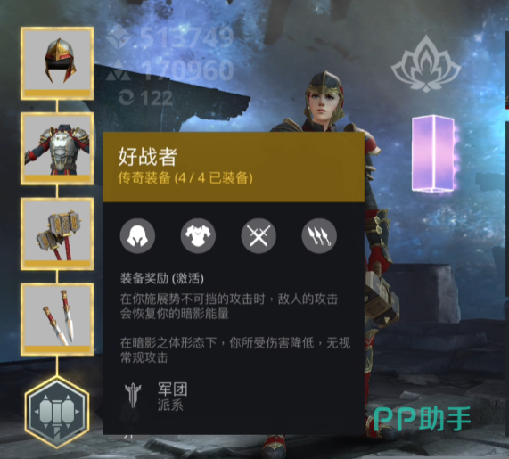 在往后是第三套t1套装,该套装叫退位者,该套装的效果强化装备者的普攻伤害,另外还能延长空血状态下的无敌时间,可以将10秒延长到11秒,别看只延长了1秒,实际上这1秒的延迟是可以大幅度提高容错的。最后是一套叫做好战者的套装,这套套装的效果是让装备者在进入暗影状态后获得大幅度的减伤,这个效果可以说是为喜欢一波流的玩家准备的,喜欢打一波流玩家的话,一定不要错过这个专属套装。