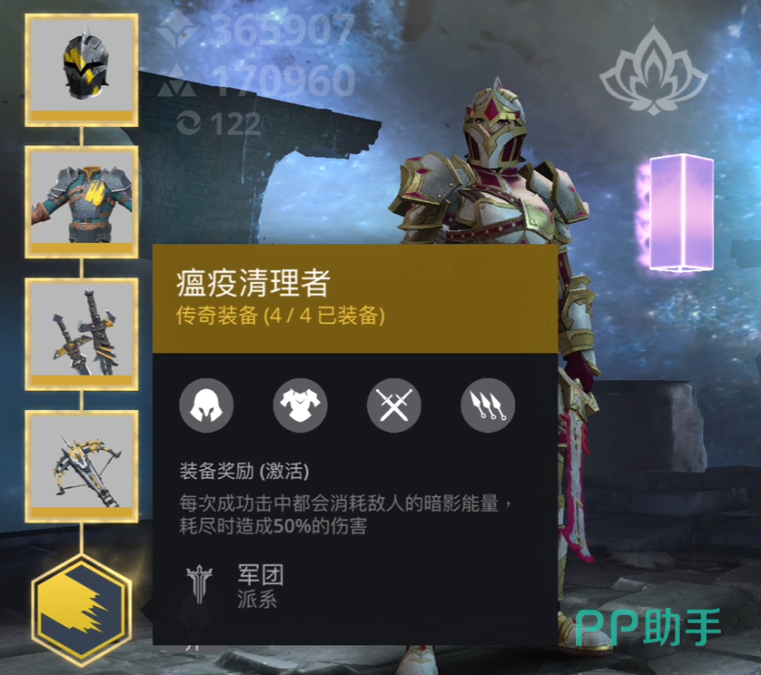 至于t1套装的话,首先要带大家看的第一套t1套装叫清理者,这套套装在装备之后,它的每一次攻击都可以减少敌人的暗影能量,在最后将敌人的暗影能量减到0之后,伤害就会增加50%,在获得这50%的增伤效果后,可以说只要敌人的血量在半血左右,就可以做到一击秒杀的效果。