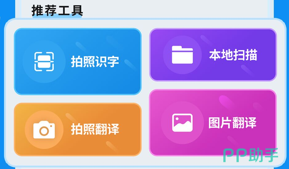 在这里大家能够实现拍照以及表格等多种不同的识别,同时也是能去进行拍照翻译和运用于多种不同的场景中,软件的功能是非常强大的,同时实用程度也是很高,让大家能便利办公。
