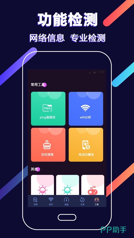 它属于多功能网络检测工具,支持网速测试和无线网络分析、空间清理等,一键清除蹭网的终端,查出其IP地址,预防资料被盗和中病毒木马,还能查询PING数值。