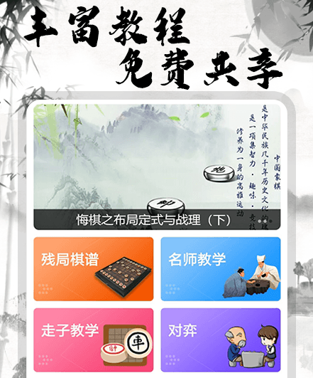 作为掌上象棋教程类的软件,它里面主打的就是中国风元素,同时也是拥有海量的教程给到大家,让用户想学习就去点击,此外也是没有什么需要等待的时间,更是带来了专业的讲解,让大家能感受象棋带来的乐趣,同时不同难度的教程也是会给到大家,让小伙伴们能快速上手,了解象棋的规则。