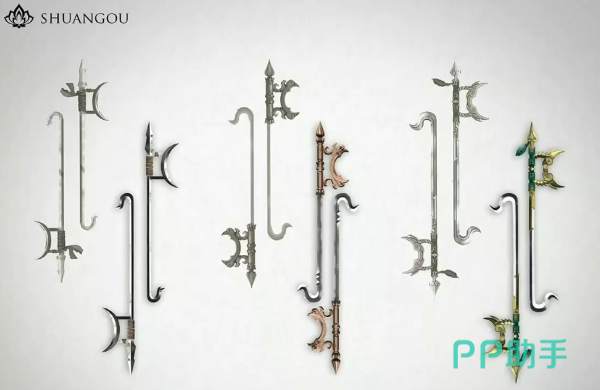 双戟:双戟是一种双头的长矛,它的特点是攻击范围大,可以轻松戳到敌人。它还有一些旋转和扫荡的招式,可以打出范围伤害。双戟适合喜欢喜欢远距离戳戳戳的人们,但攻击速度和前摇非常一般,极易被对手贴脸输出到死,所以要有一定的游戏理解才能上手。