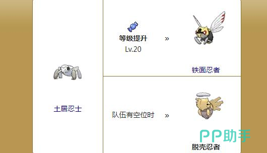 HP只有一在游戏中可以说是最特殊的存在了,首先玩家需要先拥有一只土居忍士,得到的方式也不难,只要前往丰缘116号道路的草丛里进行捕捉就可以了,当玩家捕捉到其时就可以选择将土居忍士升级进化成为脱壳忍者了,但是必须满足拥有一个普通球和一格空余的精灵位才行哦。