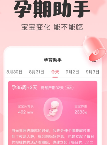 很多新手妈妈在怀孕之后,对于孕期的一系列相关内容根本不了解,甚至连最基本需要准备的物品以及待产包都不知道该如何选择。孕期伴侣这款软件满足自己的一系列需求,帮你做好怀孕的一系列准备以及生产的各项准备。其中各种细节做了全面的优化,孕妈妈们只要利用这款软件即可了解当前所处的状态以及怀孕周数,另外还有其他智能工具,比如预估胎儿体重、产检提醒等。
