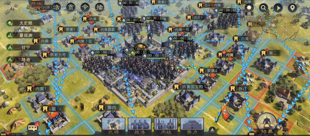 攻城的过程中可以关注目前守城的士兵是什么兵种,尽量以克制的兵种来应对,而且在整个攻城的过程当中会耗费比较长的时间,城墙原本的耐久是需要大家一点一点打下来的,等到进入城内大家㛑需要将城内全部的守军都消灭,这样才算是攻城成功哦。