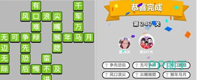 起初玩家们都是门外汉,通过成语闯关渐渐变成德高望外、大显身手。每过一关,就会出现一张图,图中暗藏成语提示。开动脑筋根据提示猜对了成语才算及格。不仅测试了自己成语的水平,也锻炼了头脑思维,越往后走越难,但一点都不枯燥。并且,玩游戏可以学习到许多成语的含义及使用方法,真可谓一举数得。