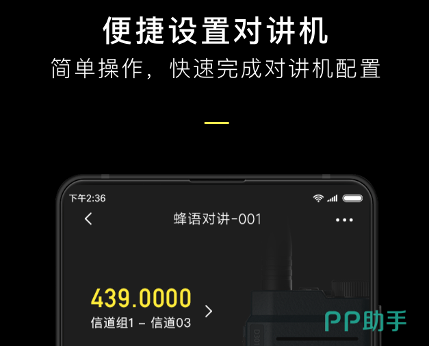 这是一款能够针对对讲机快速设置类的软件,整个操作的过程也是非常的简单,能让大家把手机用来作为对讲机,同时只要频道相同彼此连接,就可以去进行互相的沟通了。