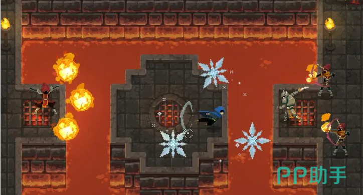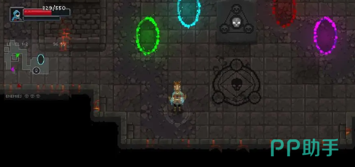 本作的难度在于地牢地形的随机性和敌人的多样性。每次进入地牢,都会生成不同的房间布局、敌人分布、商店内容等。玩家需要根据不同的情况来调整自己的策略和节奏。就像在在火焰章节中,玩家需要注意避免火焰陷阱和敌人的火焰攻击,在风暴章节中,玩家需要注意利用高低地形和敌人的电击攻击等等。