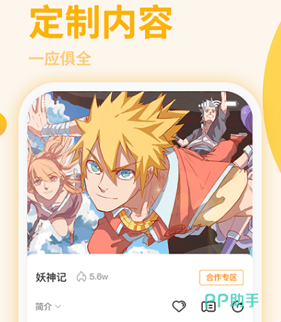 在这里发现更多优质内容,作为非常专业的二次元平台,带你玩转经典喜欢的作品全部都能找到,除了漫画之外还有动画小说,另外还有百强大神以及原创作者各种虚拟角色全部入驻其中。只要自己喜欢二次元,喜欢漫画就无需担心,在这里可找到各种风格独特的故事,另外也能结识到兴趣相投的伙伴。