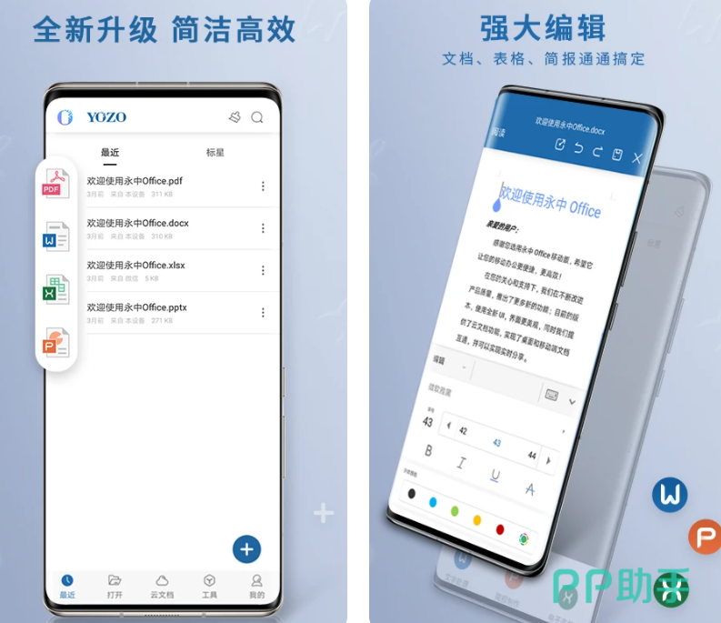这款简洁好用的移动端office软件有强大的表格制作功能,不仅可以处理文字电子表格以及制作简报,还能将各个文档转化成图片或者PDF格式,方便你打印与传输,不影响排版格式。在表格制作方面,支持在线进行数据排序查找以及公式的计算,同时还能将数据转化成图表插入,表格制作更为轻松。