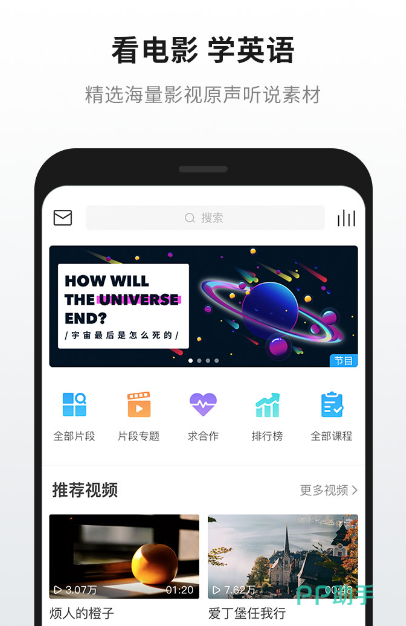 要提高自己学习英语的水平,每天只需要15分钟,就能够让你掌握更多的英语单词、以及标准的英语发音,软件中拥有1,600万分钟的英语电影,所以在使用该软件的过程中,能够让你感受到很大的乐趣,改变了传统学习英语的枯燥感,也有很多用户,虽然英语成绩比较高,但是发音及其不标准,那么通过这些有趣的影视视频来学习,可更好的规划英语的发音。