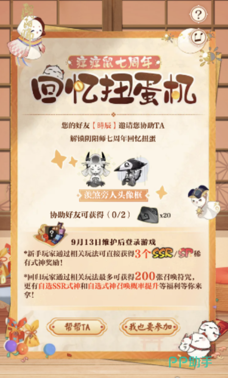 关于阴阳师七周年扭蛋活动怎么玩的内容就为大家介绍到这类啦,如果大家想要去参与七周年的话,这些奖励都是可以从活动中拿到手的哦。