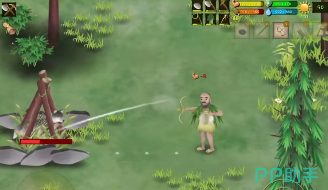 等狼掉进陷阱以后,就是你围猎的时刻了,猎杀狼刀工具有两种,一种是弓箭,一种是竹叉,弓箭和竹叉要在陷阱制作好,每个弓可以装5根箭。切记陷阱、弓箭和竹叉这三个捕猎狼的工具要在狼看到你之前制作完成,因为被狼追击的过程中无法捡东西,也无法制作东西,如果没有武器的话,则会被狼反杀。最后就是射击狼,使用弓箭或者主插都可以将狼杀死。