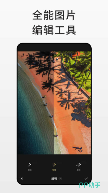 在拍完照后发现照片中多出了路过的路人或者其他影响美观的物品?直接在PhotoRetouch中将不想要的物体抹除,得到自己想要的图片。软件的编辑图片效果还可以在同一屏幕内上下同时展现编辑前和编辑后的图片,让用户能更明显地感受到软件编辑的功能效果。
