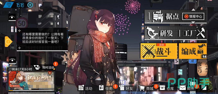 WA2000:该角色是游戏中人气最高的强势角色之一,她的各项属性都很优秀,虽然建造时间需要足足四分五十秒,不过高达A级的伤害和S级的命中都令其跻身一流输出行列,而且她的射速也有A的评级,所以实战中她配合高额的输出频率可以在单位时间内打出十分可观的进攻表现,除了几项进攻属性以外,它C级的回避和B级的生命也不算太拖后腿,至于A级的成长和7点的移速就更不用说了,这几乎都是五星角色标配的优势了。