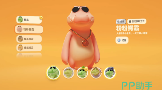 此外,还有鳄霸,一只强壮而善良的大鳄鱼。鳄霸是派对的保卫者之一,他拥有强大的力量和勇敢的精神,曾经是派对擂台霸主的存在,也是它名字中“霸”字的来源。虽然他外表凶悍,但是却有着一颗温柔的心,对弱者充满同情心,总是愿意伸出援手,帮助那些需要帮助的动物。鳄霸的善良和勇敢使他成为了派对中备受尊敬和信赖的角色。他的外观有5种,分别是粉粉鳄霸、腹黑鳄霸、橘橘鳄霸、熔岩鳄霸和蓝蓝鳄霸。他还有4款皮肤,分别是梦游、菠萝、神棍和海盗。