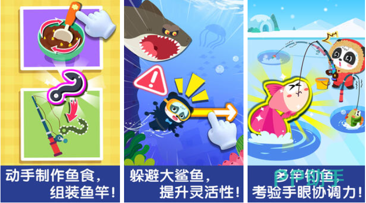 如果你家的小宝宝对海洋和鱼类知识很感兴趣,那么给他玩这款宝宝钓鱼游戏准没错,这款手游不仅能给宝宝普及知识,还能让孩子们的手眼协调能力得到提升,因为在游戏中孩子们要自己组装渔具哦,多样化的鱼类和钓场也能丰富孩子们的认知,锻炼耐心的钓鱼过程能磨炼孩子的心境,欢迎各位父母下载宝宝钓鱼这款佳作给孩子们!