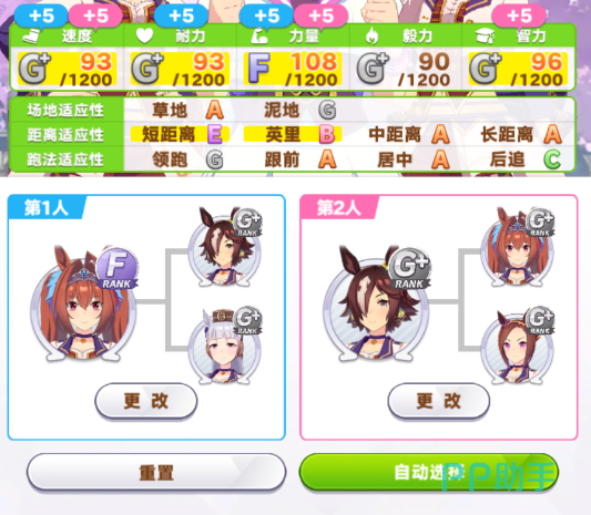 由于无声铃鹿在短距离比赛中是有大的优势的,所以玩家们在培养之前,可以选择同属性的角色来进行继承因子,比如【大树快车】和【樱花进王】这两个卡来进行协助培养,这样在训练过程中会获得更高的属性加成!