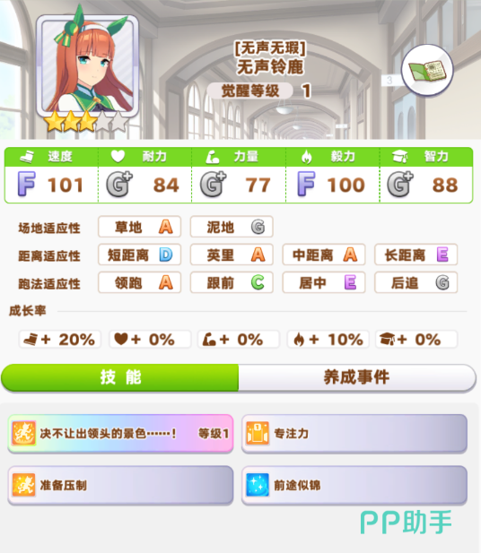 这样对训练也有很好的帮助,由于无声铃鹿在游戏中出现在限定卡池中,是一个比较特殊的存在,玩家们在训练过程中,尽可能的优先对其速度进行培养,因为短距离就讲究的是一个爆发性,在冲刺的时候,速度起到了一个很关键的作用!